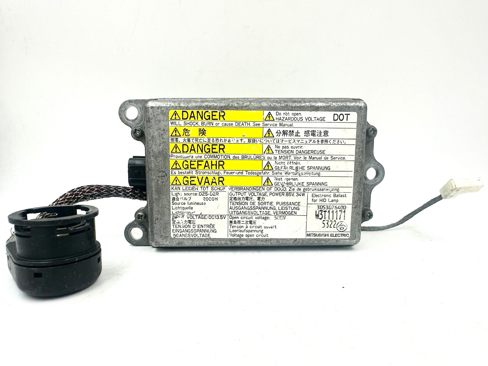 This ballast came from a different than Evolution vehicle. It is the same exact type and it fits listed cars, however, the igniter wire length is just enough to reach to the bulb