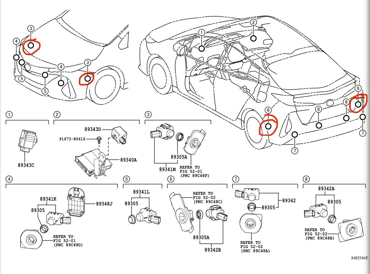 Please check the diagram for the sensor placement on the body of the vehicle, marked red